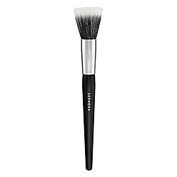 So I looked it up. According to Sephora, it’s “A stippling brush that perfectly applies powder, liquid, and cream foundations. Ensure a gorgeous, sheer finish and even, streak-free application with this stippling brush that complements any foundation. The white, taklon bristles apply product and the black, goat bristles blend for flawless results—an ideal duo of natural and synthetic fibers. The sleek, wood handle fits comfortably in the hand and allows for total control over your desired look.”