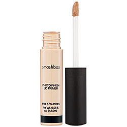 Make sure your canvas is as clean as possible; you don’t need any extra mascara darkening your socket. Then start with an eye shadow base. A good one will help neutralize along with creating a surface to grab the concealer. In painting myself back into normalcy, I used more Smashbox Eye Shadow Primer than anything else. It’s a nude/apricot color that really helped to neutralize the purple, and it’s creamier than other eye primers (I know a lot of people swear by Urban Decay, but I like Smashbox’s heavier texture better). Plus, the doe-foot applicator made it easy to pack the product in one spot. Blend the harsh edges with a concealer brush, being careful not to smudge the concentrated pigment in the center.