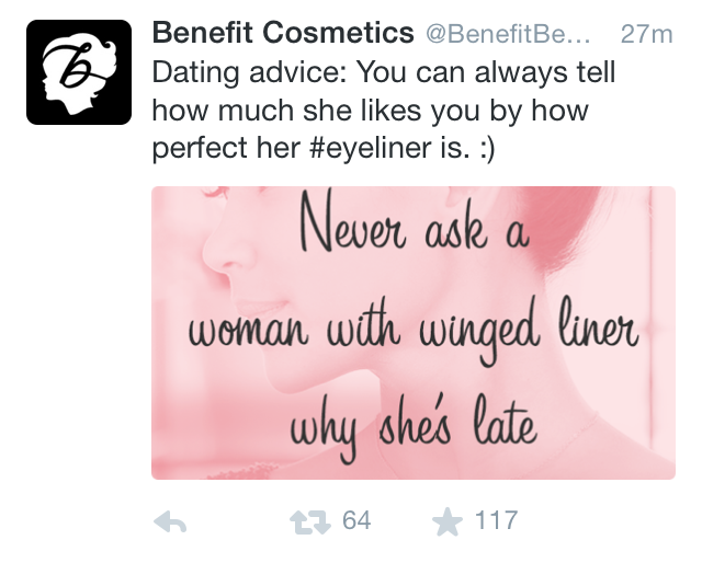 Benefit, nooo :( August 10, 2014August 10, 2014 / Sarah Campbell Love you, Benefit, but I most definitely have perfect eyeliner regardless of my companion, thank you very much. Share this: Click to share on X (Opens in new window) X Click to share on Facebook (Opens in new window) Facebook Like Loading... Related
